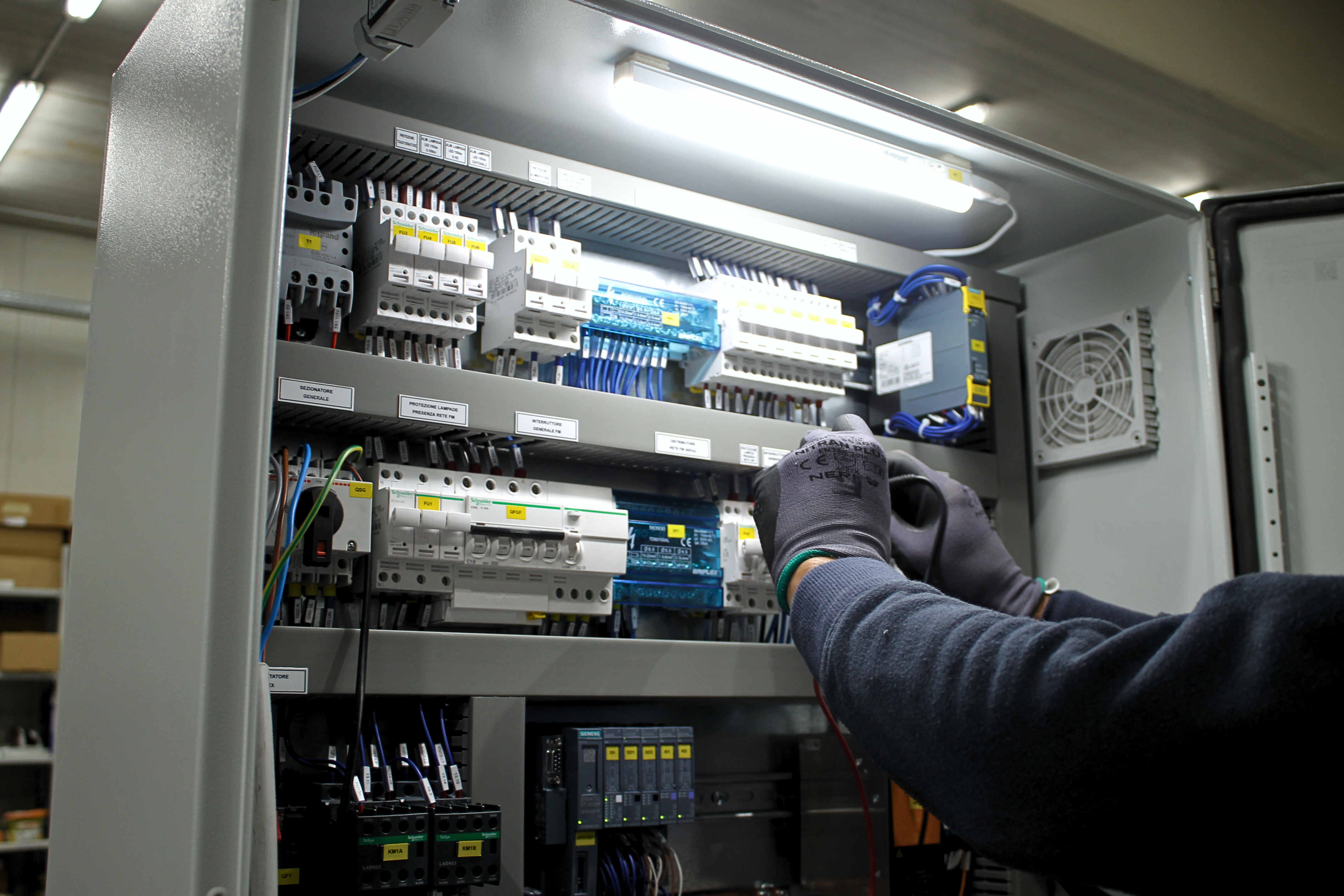 Our electrical workshop is equipped for the complete production of electrical panels, from metalwork to wiring. Each panel is tested in-house before delivery.